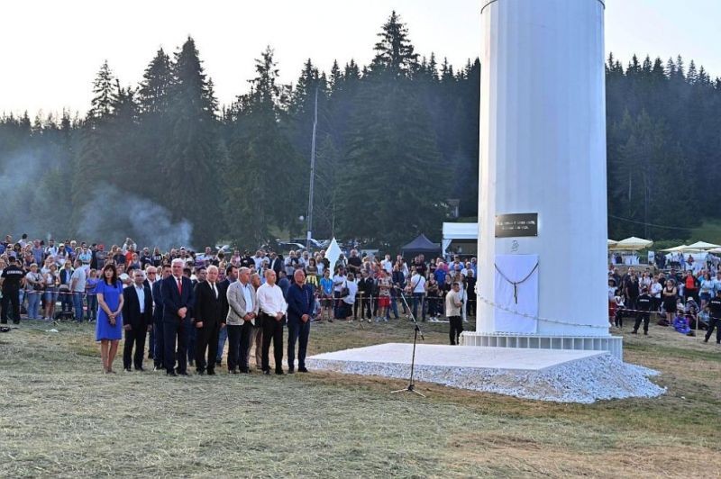С изпълнения на фолклорните ансамбли „Родопа“ и „Тракия“ започна програмата за откриването на Пилон „Рожен“ и издигане на българското знаме. Издигането на българския национален флаг на Рожен е посветено на 111 години от Освобождението на Родопите и 120 години от Илинденско-Преображенското въстание.
