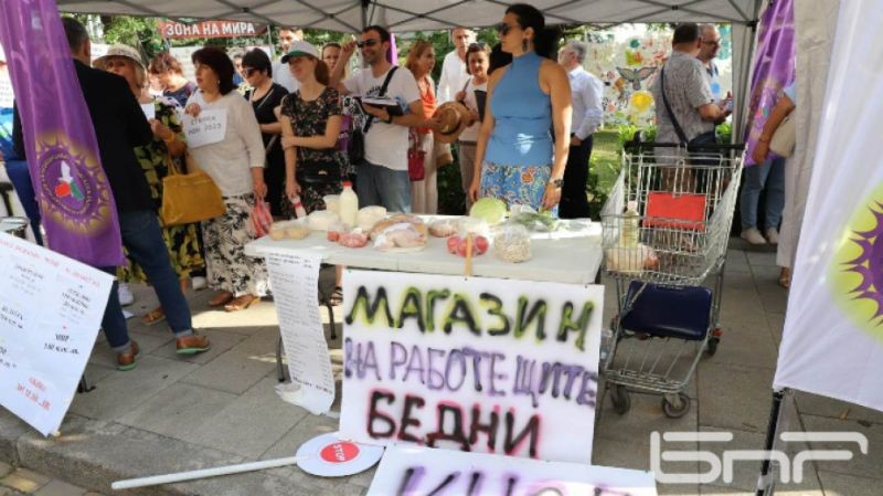 Протестиращите направиха импровизиран магазин за бедни и раздават ваучери по 14 лева на депутатите, защото толкова е дневната минимална заплата. Пазаруват депутати от различни парламентарни групи. Те избират пиле, месо, ориз и други от 20-те стоки от кошницата за бедни с основни хранителни продукти.
