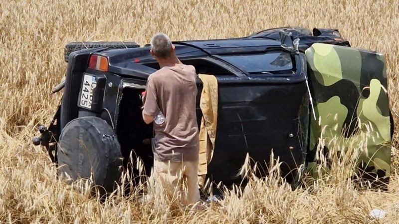 Автомобил е излезнал от пътното платно и се е преобърнал в нива край пътя до Мъглиж.