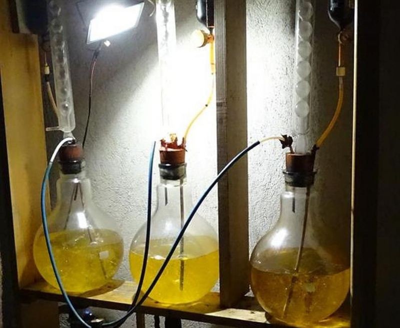 При претърсването са намерени и иззети около 90 кг ефедрин, голямо количество химични вещества, използвани за производството на наркотичните вещества, както и множество машини и съоръжения, използвани за синтеза на веществата.