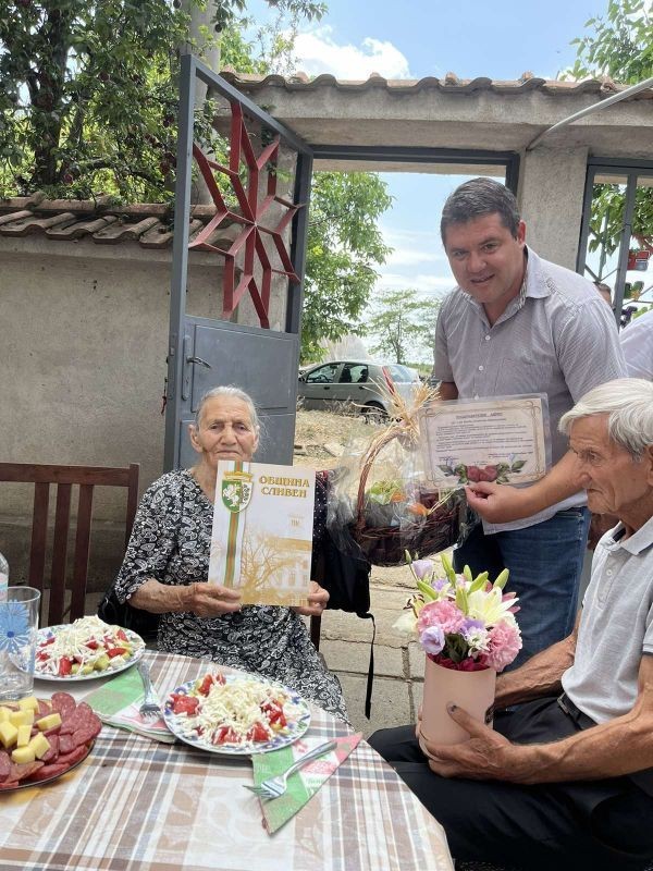 „За мен е чест да поздравя жена, преминала през изпитания, изживяла радости и скърби, дала своя принос за обществото през последните 100 години. Малко са хората, избрани да видят развитието на един век, да посрещат изгреви и залези с палитра от емоции. Вярвам, че съдбата дава шанс на тези, които носят в себе си много любов към хората, доброта и знаят истинския смисъл на живота. Бъдете благословена с дните си до сега, здрава и със силен дух занапред!“, написа в поздравителния си адрес кметът Стефан Радев.