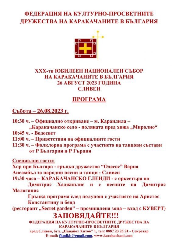 30-и юбилеен Национален събор на каракачаните в България ще се проведе в местността Карандила в последната събота на месец август.