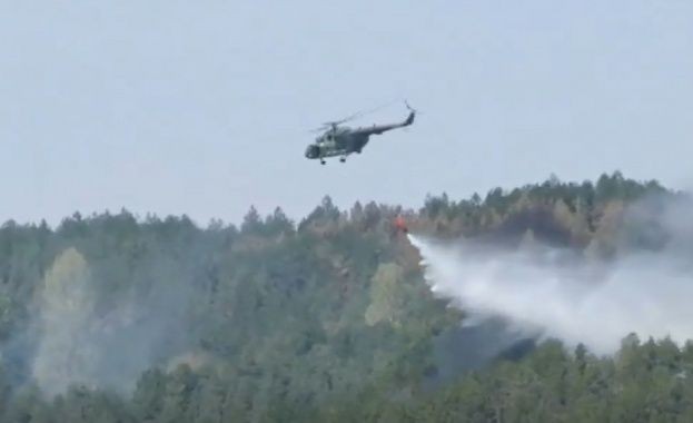 Хеликоптерът излетял от базата в 10:10 ч. и гаси пожара от въздуха. Искането беше направено от Главна дирекция "Пожарнабезопасност и защита на населението".
