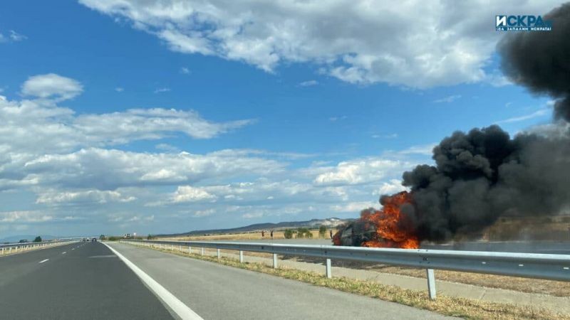 Инцидентът е станал днес в следобедните часове. Според очевидци пътниците в горящия автомобил са били извън него. Към момента властите не са обявили причината за инцидента, нито дали някой е пострадал, съобщи ИСКРА.бг.