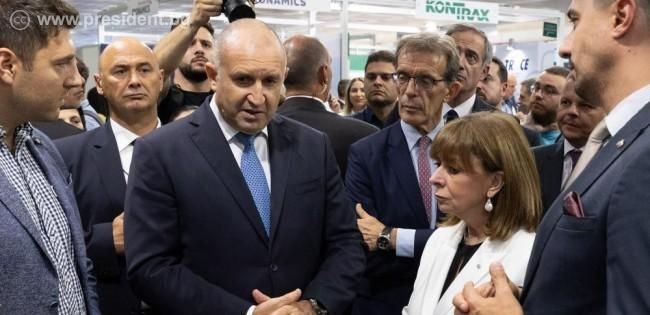 Президентите Румен Радев и Катерина Сакеларопулу разгледаха българския павилион, в който са представени около 60 български компании в сферата на високите технологии и иновациите, енергетиката, машиностроенето и транспорта, туризма и производството на храни.
