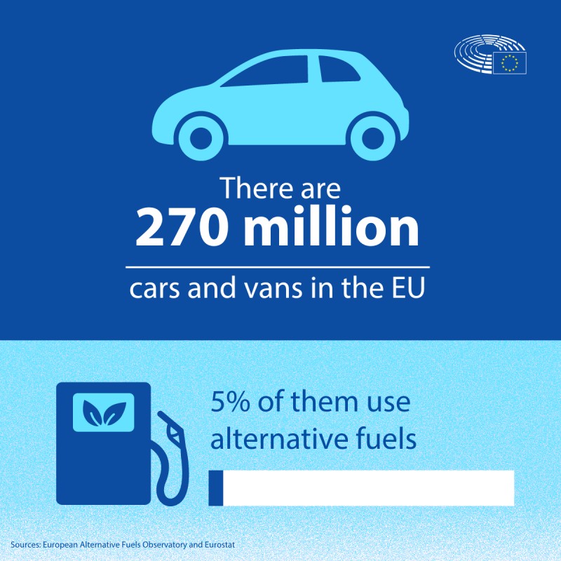 Около 5% от автомобилите и микробусите, които се движат днес в ЕС, използват алтернативни горива. Броят на електрическите превозни средства в ЕС е нараснал до над 4,4 милиона през 2022 г., 16 пъти повече в сравнение с 2015 г.