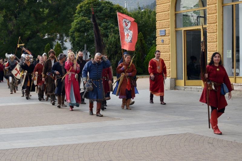 Живописните облекла, шлемовете, ризниците, мечовете, сабите, копията, богато украсените дамски одежди привлякоха интереса на деца и възрастни. Фотографските камери не спряха да щракат, а мобилните телефони направиха много видеокадри и снимки с представителите на различни исторически епохи. Участниците наградиха публиката с две възстановки – бойни умения с щит и меч показаха западноевропейски рицари и български воини от Ранното средновековие – със саби. След това всички потеглиха в шествие по ларгото преди да се отправят към крепостта „Туида“ за последна подготовка преди голямото събитие на 7 и 8 октомври – седмото издание на „Помни славата“.