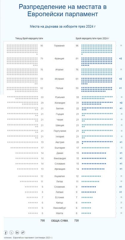 През септември 2023 г. евродепутатите одобриха решението на Европейския съвет за увеличаване на броя на местата в Европейския парламент с 15 до 720 за законодателния мандат 2024-2029 г.