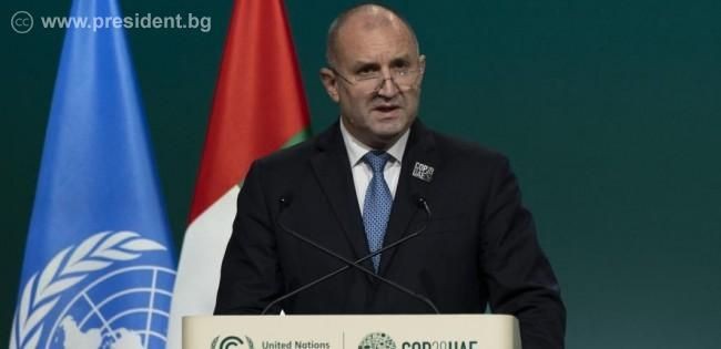 Във връзка с очакваното решение по време на COP 28 за председателството на COP 29, президентът Румен Радев посочи, че България, като една от страните кандидати, ще продължи конструктивно и отговорно да търси компромис в процеса, след безпрецедентната ситуация, в която поради вътрешни противоречия и взаимно блокиране на кандидатурите, решение все още не е взето.