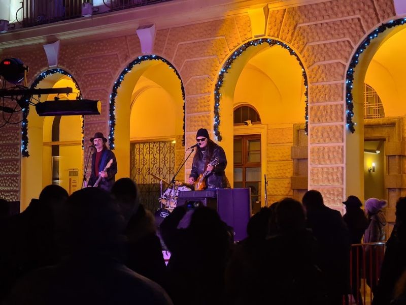 Празнични илюминации поставиха началото на Новата година. В първите минути на сцената излезе Славка Калчева и присъстващите заиграха хора под ритъма на популярните й песни.