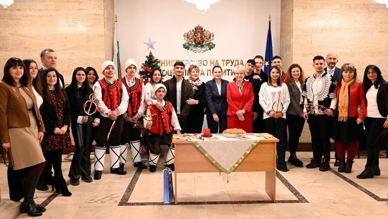 Ученици от гимназията по текстил „Добри Желязков“ в Сливен сурвакаха ръководството на МТСП за ромската Нова година