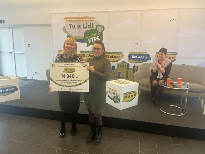 Омбудсманът Диана Ковачева връчи чек от 14 350 лв. в подкрепа на проекта „Многообразие и равенство в Чудната градина", част от финансиращата програма „Ти и LIDL за нашето утре“ 2023 г., проведена под патронажа на омбудсмана.