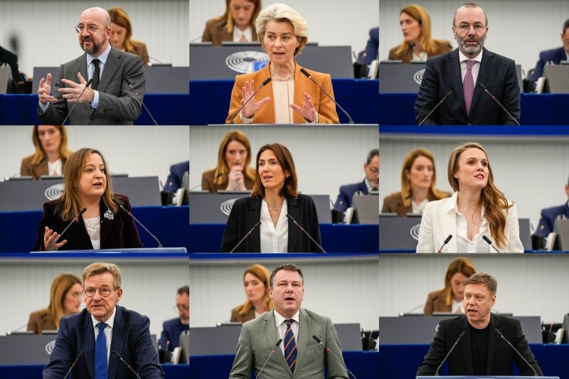 Членовете на ЕП, представляващи мнозинството в парламента, повториха, че отбраната на Украйна е отбраната на Европа. Те изразиха своята непоколебима подкрепа за страната и отбелязаха, че трябва да се ускори доставката на оръжие и боеприпаси. Някои евродепутати повдигнаха идеята за използване на замразени руски активи и тревожните политически събития в САЩ, докато други алармираха за заплахата от разпространение на войната извън Украйна и предупредиха, че продължаващата надпревара във въоръжаването не е устойчива.