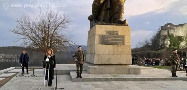 „Левски остави толкова трайна следа в българската история, че днес от цялата палитра български герои той е най-светият и достоен за подражание“, посочи Йотова. „Какво да искам повече като гледам Отечеството си свободно – тези думи на Левски казват всичко за неговата личност. Малко повече от век по-късно проф. Николай Генчев ще определи тези думи като най-силните, най-респектиращите в цялата политическа мисъл от онова време, защото в тях няма и капка демагогия, защото с целия си живот и със смъртта си Левски доказа истинността им“, подчерта вицепрезидентът.