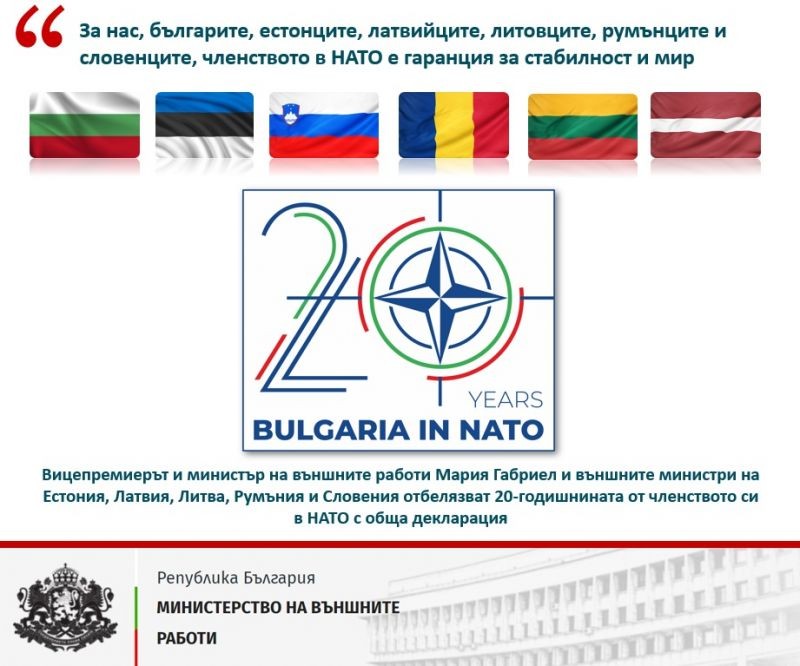 По повод 20-ата годишнина от присъединяването на България, Естония, Латвия, Литва, Румъния и Словения към НАТО, министрите на външните работи на тези страни публикуваха съвместна декларация, подчертавайки значението и перспективите на тяхното членство в организацията.