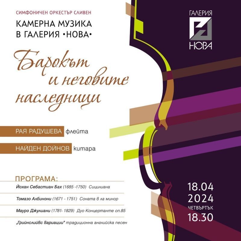 Събитието ще се проведе в галерия „Нова“ на 18 април от 18:30 часа. Програмата включва изпълнения на дуо, съставено от флейтистката Рая Радушева и китариста Найден Дойнов, които ще представят специално подбрана, вълнуваща програма с произведения от Германия, Австрия и Италия.
