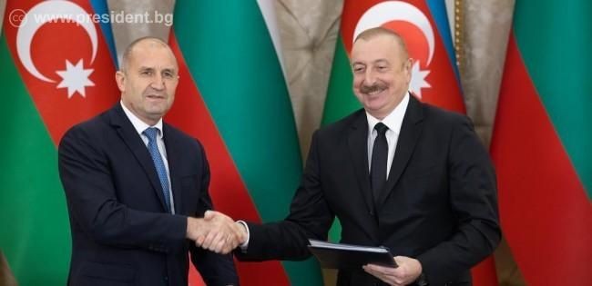 Държавните глави на България и Азербайджан, Румен Радев и Илхам Алиев, подписаха Съвместна декларация за укрепване на стратегическото партньорство между двете страни. Документът подчертава потенциала и взаимното желание да се развият отличните двустранни отношения в полза на просперитета на България и Азербайджан, съобщават от Президентството.