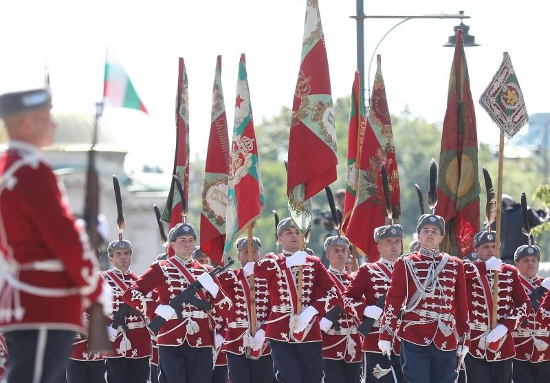 На тържествения ритуал пред паметника на Незнайния воин присъстваха президентът Румен Радев, министър-председателят Димитър Главчев, началникът на отбраната адмирал Емил Ефтимов, висши офицери от Въоръжените сили, представители на държавното ръководство, на Дипломатическия корпус, както и на военно-патриотични съюзи, съобщиха от Министерство на отбраната. Водосветът на бойните знамена и знамената-светини беше отслужен от наместник-председателя на Светия Синод на Българската православна църква Негово Високопреосвещенство Врачански Митрополит Григорий.