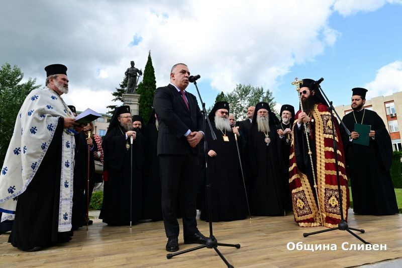 Кметът Стефан Радев посрещна новия сливенски митрополит Арсений на официална церемония на площад „Хаджи Димитър“