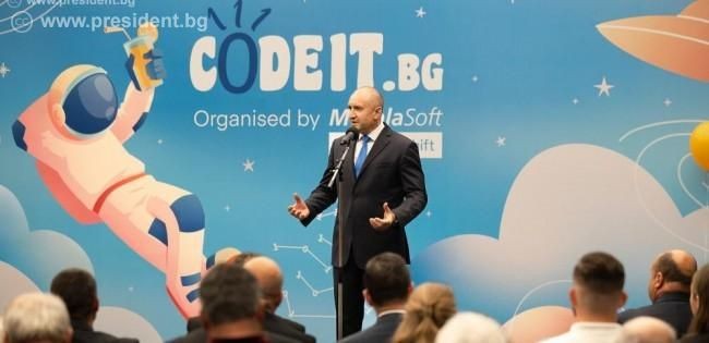 Програмирането и информатиката са се превърнали в универсален език, който обединява любознателните и ангажираните с бъдещето на света хора. Поради тази причина страната ни трябва да насърчава и подкрепя стремежите на своите програмисти, които допринасят за подобряването на различни сфери от живота. Това заяви президентът по време на церемонията по награждаване на финалистите в 24-ото издание на конкурса по програмиране “CodeIT”, който се състоя под патронажа на държавния глава. Организатор на състезанието е софтуерната компания „Мусала Софт“.