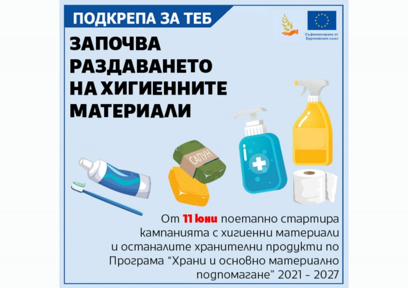 От 11 юни 2024 г. започва раздаването на пакети с хигиенни материали и хранителни продукти по европейска програма