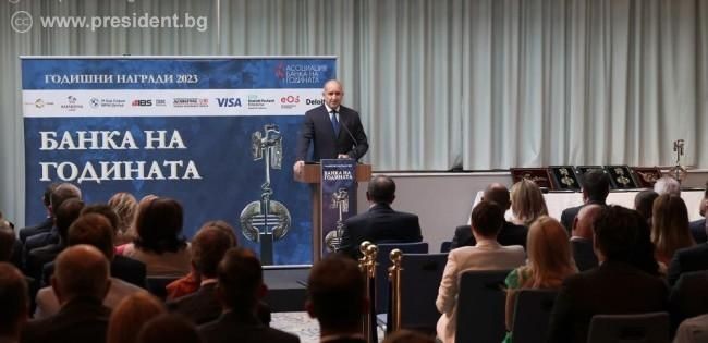 Президентът посочи, че банките играят ключова роля в прехода и трансформацията на българската икономика към устойчиво развитие и дигитализация, както и в повишаването на финансовата култура и информираността на гражданите.