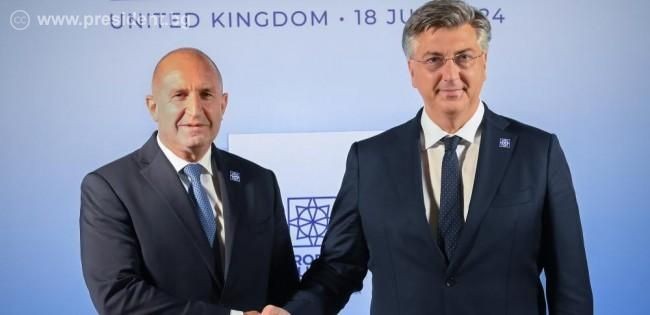 Президентът Румен Радев и министър-председателят на Хърватия Андрей Пленкович обсъдиха присъединяването на България към сухопътните граници на Шенген и процеса на разширяване на ЕС. Разговорът се състоя в двореца „Бленъм“ край Оксфорд по време на срещата на Европейската политическа общност.