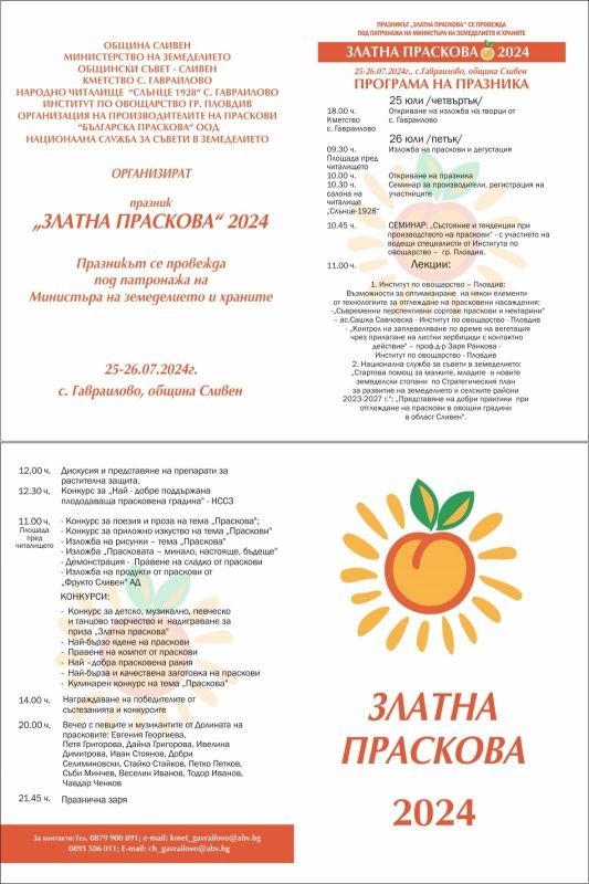 Традиционният празник „Златна праскова“ ще се проведе на 25 и 26 юли в село Гавраилово