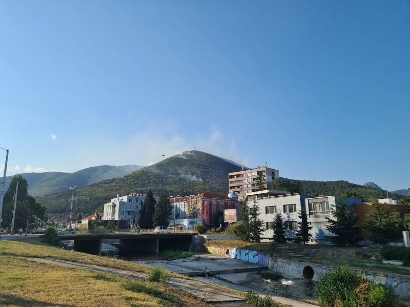 Няма риск пожарът, който започна днес в квартал „Комлука“ в Сливен, да достигне до близките къщи