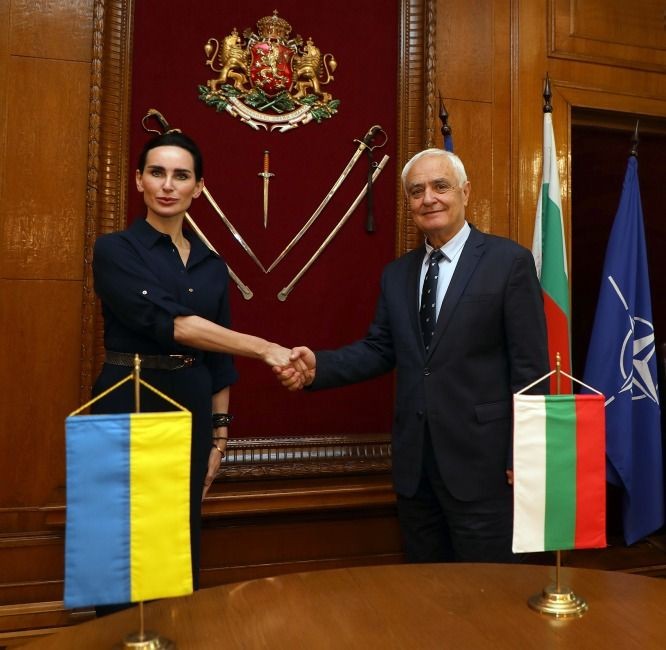 Те обсъдиха и скорошната среща на министрите на отбраната на страните членки на Европейския съюз, както и предстоящото заседание на Контактната група за предоставяне на отбранителна помощ на Украйна. Н. Пр. Олеся Илашчук изрази своята благодарност за оказаната помощ и подчерта нейното значение за Украйна.