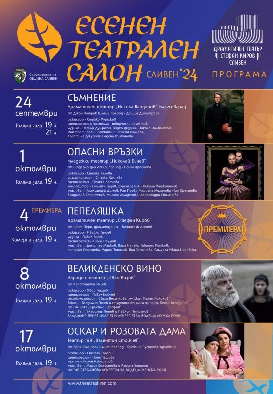 От 24-ти септември до 17-ти октомври 2024 г. в Сливен ще се проведе Есенен театрален салон