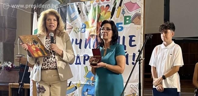 В приветствието си към учителите, вицепрезидентът подчерта, че тяхната мисия е особено значима, тъй като те предават на децата любов към Родината и знания за българската история и език. Йотова изказа благодарност на родителите за подкрепата им и увери всички, че българската държава ще продължи да подкрепя съхраняването на българската идентичност в чужбина. По повод новата учебна година тя подари на училището позлатена плочка с кирилските букви и икона на Светите братя Кирил и Методий.