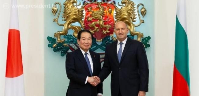 Президентът Румен Радев и председателят на Камарата на представителите на японския парламент Фукуширо Нукага обсъдиха възможностите за задълбочаване на двустранното сътрудничество между България и Япония в области от взаимен интерес като иновации, информационни технологии, наука и образование, и други сфери по време на среща в президентската институция. Гостът и водената от него делегация са на официално посещение у нас, съобщиха от Президентството.