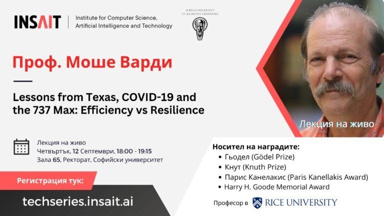 Известният компютърен учен проф. Моше Варди ще изнесе открита лекция в Софийския университет „Св. Климент Охридски“. Посещението е по покана на българския Институт за компютърни науки, изкуствен интелект и технологии (INSAIT) и е част от инициативата INSAIT Tech Series.