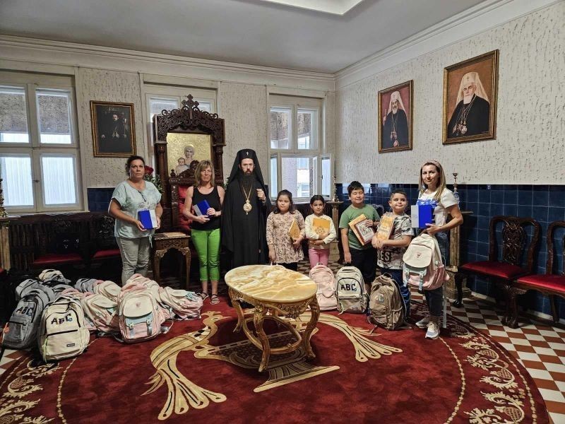 Сливенският митрополит Арсений подари ученически раници и пособия на първокласници от социално слаби семейства