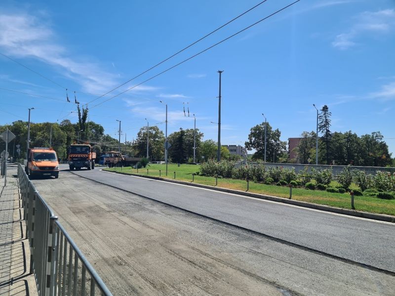 Ремонтът на кръговото кръстовище завършва днес, като остава полагането на маркировката. Асфалтирането бе необходимо заради повреди по пътната настилка.