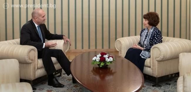 Президентът Румен Радев изрази надежда, че желанието за диалог и разбирателство, показано от президента на Република Северна Македония (РСМ) Гордана Силяновска, ще се превърне в последователна политика на правителството на РСМ. Това бе обсъдено по време на среща в президентската институция в София, където Силяновска е на посещение за гостуването на Националната опера и балет на РСМ с операта „Набуко“, съобщиха от пресцентъра на Президентството.