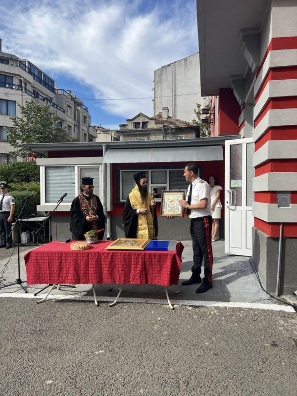 Митрополит Арсений, заедно със ставрофорен иконом Емилиан Михайлов, отслужи молебен за Божията помощ, закрилата и здравето на огнеборците. В речта си владиката подчерта важността на личния пример, който пожарникарите дават чрез своята всеотдайна служба, и подари на комисар Николаев икона с изображението на Света Богородица, съобщиха от Сливенската митрополия.