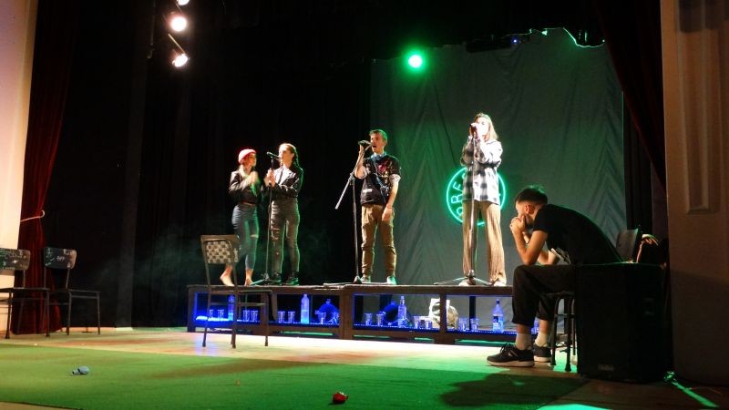 Увлекателната игра на актьорите от Драматичен театър „Търговище“ докосна сърцата на младежката публика, която ги възнагради с ентусиазирани аплодисменти.