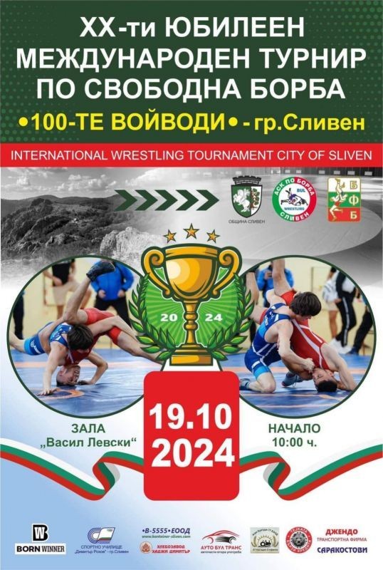 Сливен ще бъде домакин на спортни събития по свободна борба и акробатика като част от програмата за празника на града – Димитровден. На 19 октомври в зала „Васил Левски“ ще се проведе юбилейният ХХ турнир по свободна борба за кадети „100-те Войводи“, организиран от АСК по борба „Сливен“, с участието на отбори от България и Турция. Турнирът ще започне в 10:00 часа.