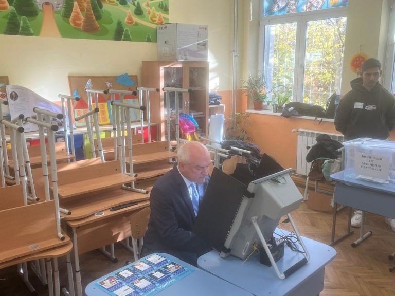 Главчев гласува тази сутрин в столичното 5 ОУ „Иван Вазов“ и избра да използва машина за гласуване.