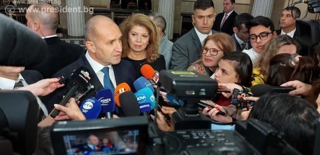 Радев пожела успех на парламента в първите му важни начинания, като избор на председател и ръководство. Той отбеляза, че предвид натрупаните проблеми задачата на 51-вото Народно събрание е особено трудна поради съмненията за опорочаване на вота, които са преминали прага на обществена търпимост.