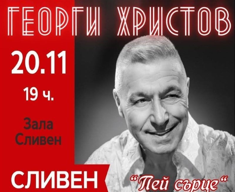 Георги Христов стартира турнето си „Пей сърце“, като на 20 ноември 2024 г. ще изнесе концерт в зала „Сливен“ от 19:00 часа.