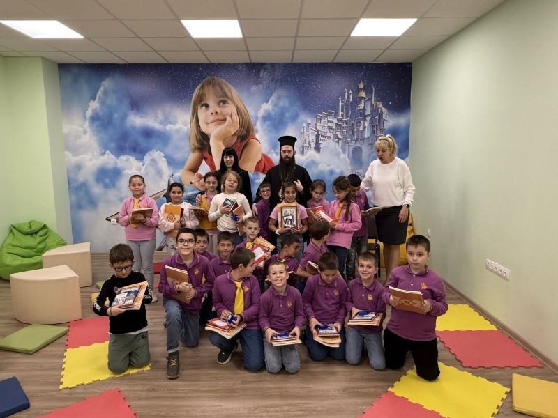 Владиката подари на децата детски молитвеник, детско Евангелие и рождественска книжка, а в знак на признателност директорът г-жа Паскалева му връчи Благодарствена грамота за посланик на четенето.