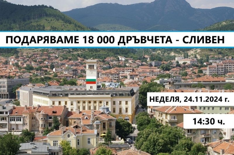 На 24 ноември 2024 г., неделя, „Гората.бг“ ще раздаде 16 000 плодни, медоносни и паркови дръвчета на жителите на Сливен и региона. Събитието ще се проведе на площад „Хаджи Димитър“ от 15:30 часа като част от амбициозната инициатива за засаждане на 5 милиона дървета до края на 2025 г.