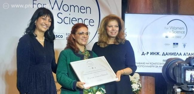 Д-р инж. Даниела Атанасова, отличена за проект за композитен материал от памучен плат с биополимери за фармацевтични и козметични приложения;