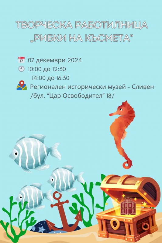 На 7 декември 2024 г. (събота) в Регионалния исторически музей - Сливен ще се проведе творческа работилница за Никулден, озаглавена „Рибки на късмета“. В нея децата ще имат възможност да изработват рибки, символизиращи морето и Св. Николай, използвайки цветна хартия, бои и своето въображение.