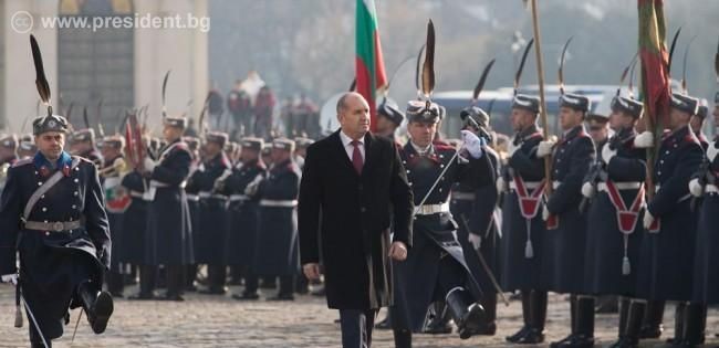 Радев, заедно с вицепрезидента Илияна Йотова, участва в ритуала по водосвет на бойните знамена, прие почетния строй на Българската армия и поднесе венец пред паметника на Незнайния воин.