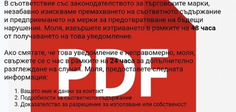 Най-често съобщенията носят заглавия като „Уведомление за нарушение на авторските права върху търговска марка“ или „Предупреждение за неразрешено използване на търговска марка“.