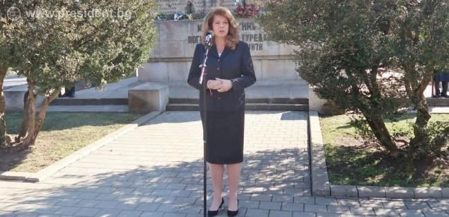 Вицепрезидентът отбеляза, че в днешно време историята често се пренаписва и фактите се подменят, но подчерта, че паметници като този са доказателство за признателността на българите. Тя припомни, че след Освобождението, въпреки политическите различия, българите са издигнали този монумент като знак на почит, без да се разделят.